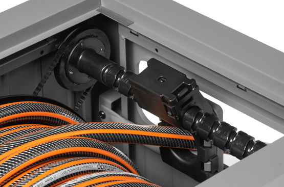 Система автоматической укладки шланга накручивает его на барабан катушки равномерно без заломов и перекручивания.